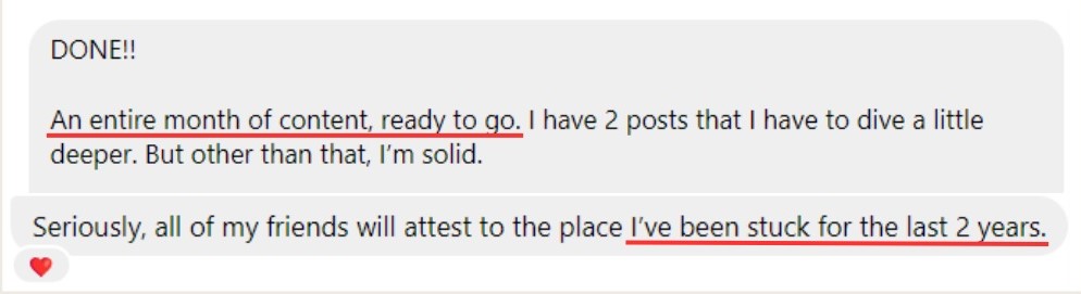 The Club gave me structure to the chaos! It shows me that I can in fact do social media. Now I can plan content, post to socials, speak to my IC, and use ChatGPT in a way that helps me instead of being all over the place."