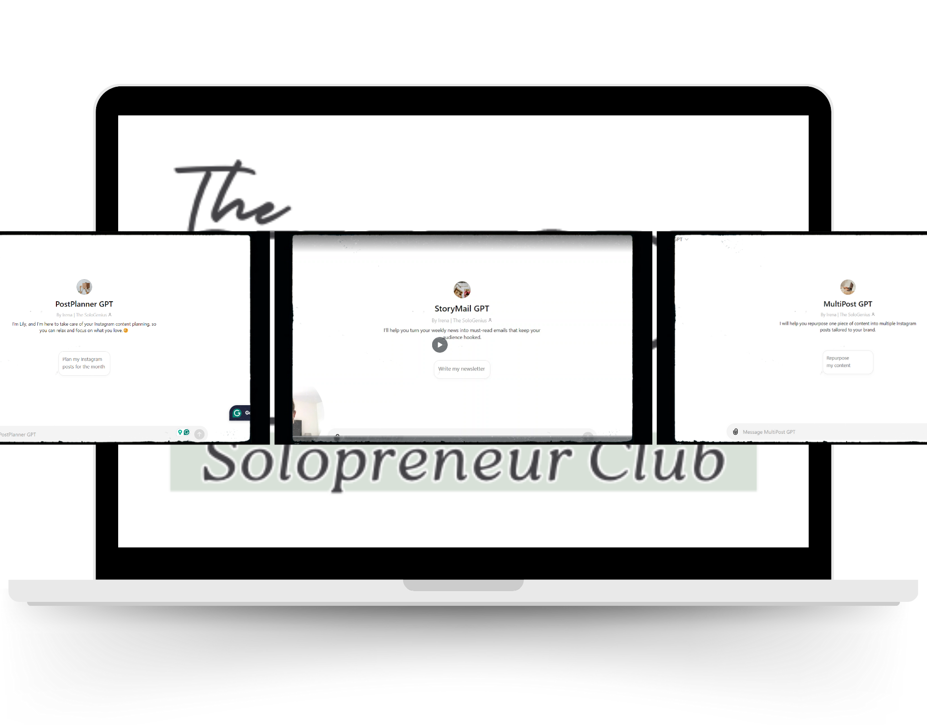 The ChatGPT Solopreneur Club is centered around using ChatGPT to make your business journey smoother and more efficient.