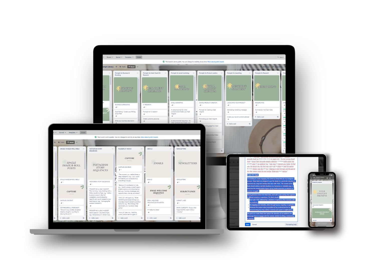 Access to two Trello Boards that house all your ChatGPT prompts and content templates in one convenient place.